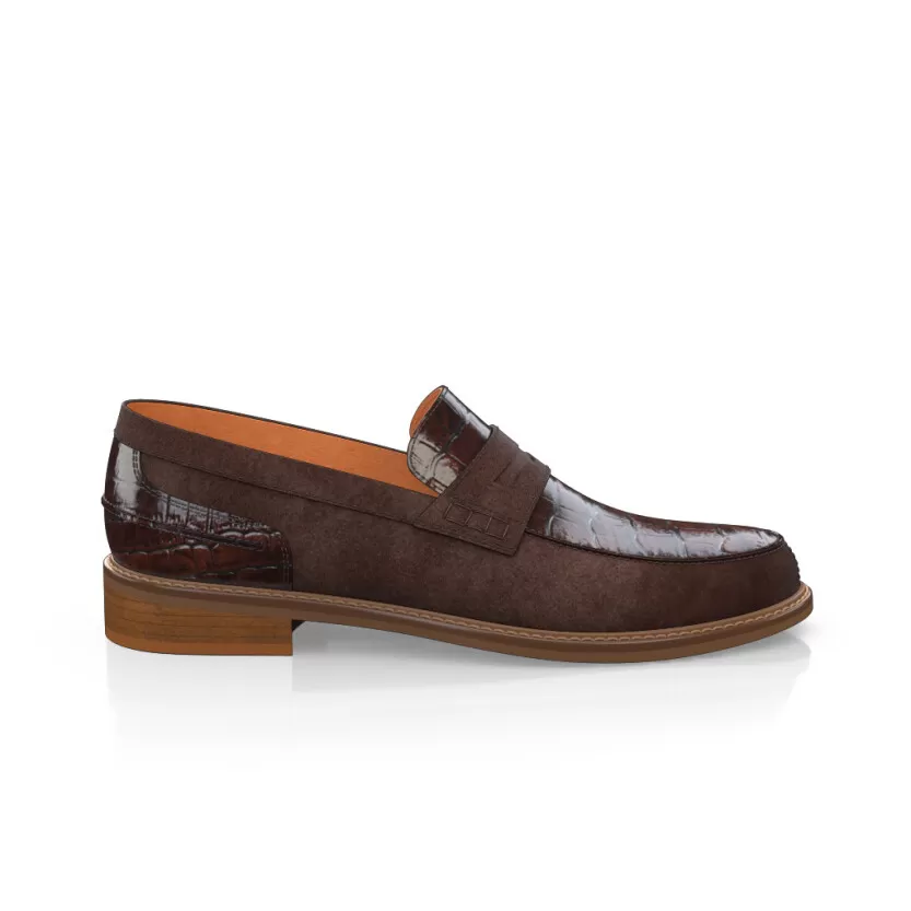 Men`s Penny Loafers are handcrafted by individual order. Upper material is made by stamped leather, suede. Insole and lining materials – leather. Your new shoes will be handcrafted especially for you and delivered for free to your home or office in 7-14 days. Included option for free return and remake if the shoes do not fit.