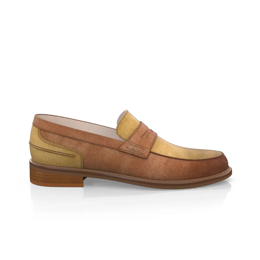 Men`s Penny Loafers are handcrafted by individual order. Upper material is made by suede. Insole and lining materials – leather. Your new shoes will be handcrafted especially for you and delivered for free to your home or office in 7-14 days. Included option for free return and remake if the shoes do not fit.